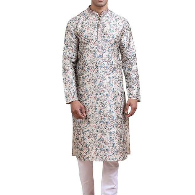 KISAH Mens Kurta Jacket Trouser Set|Cotton Blend Fabric Printed Pattern Mens Ethnic Wear|Regular Fit Mandarin Collar Long Sleeves